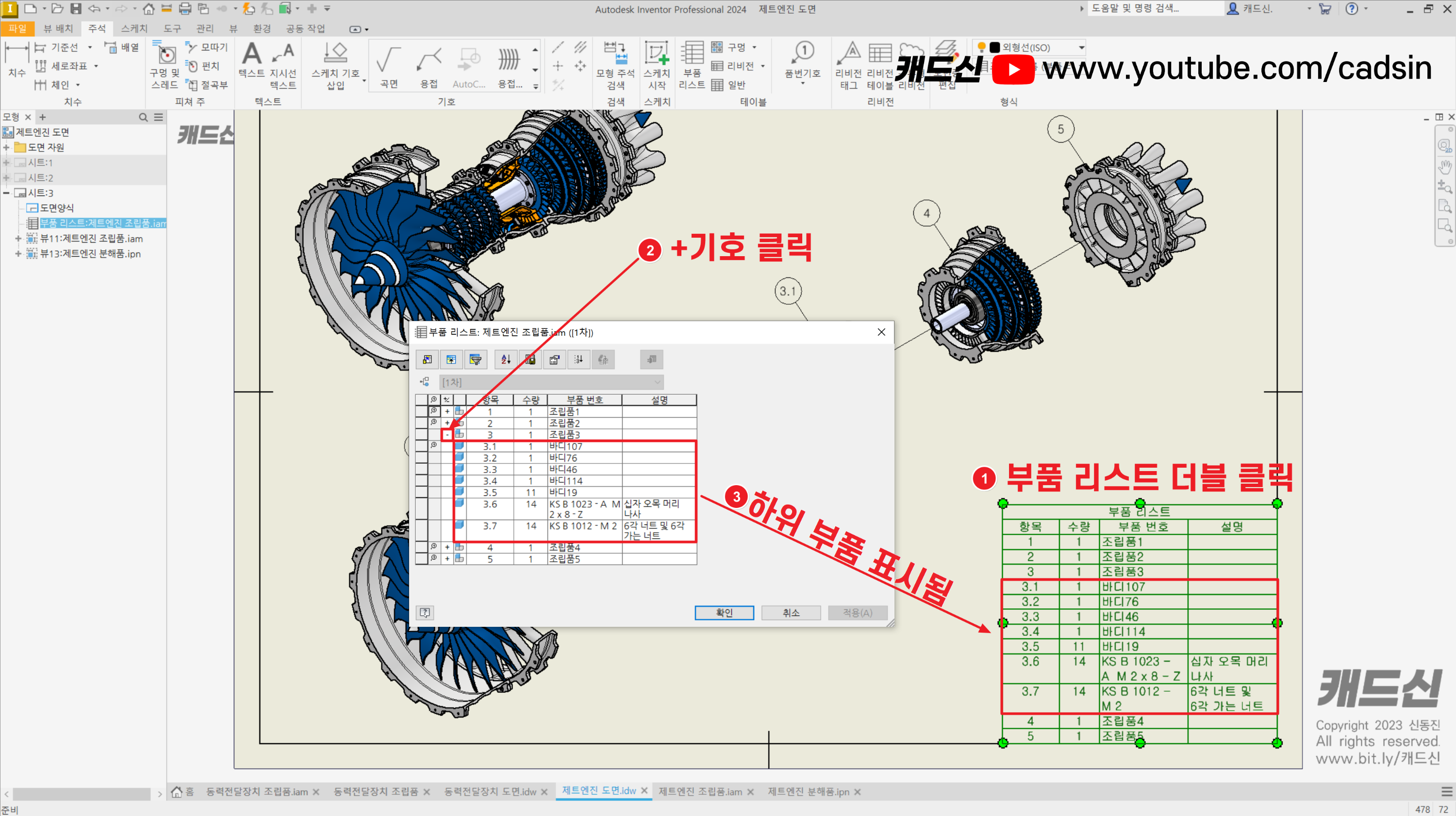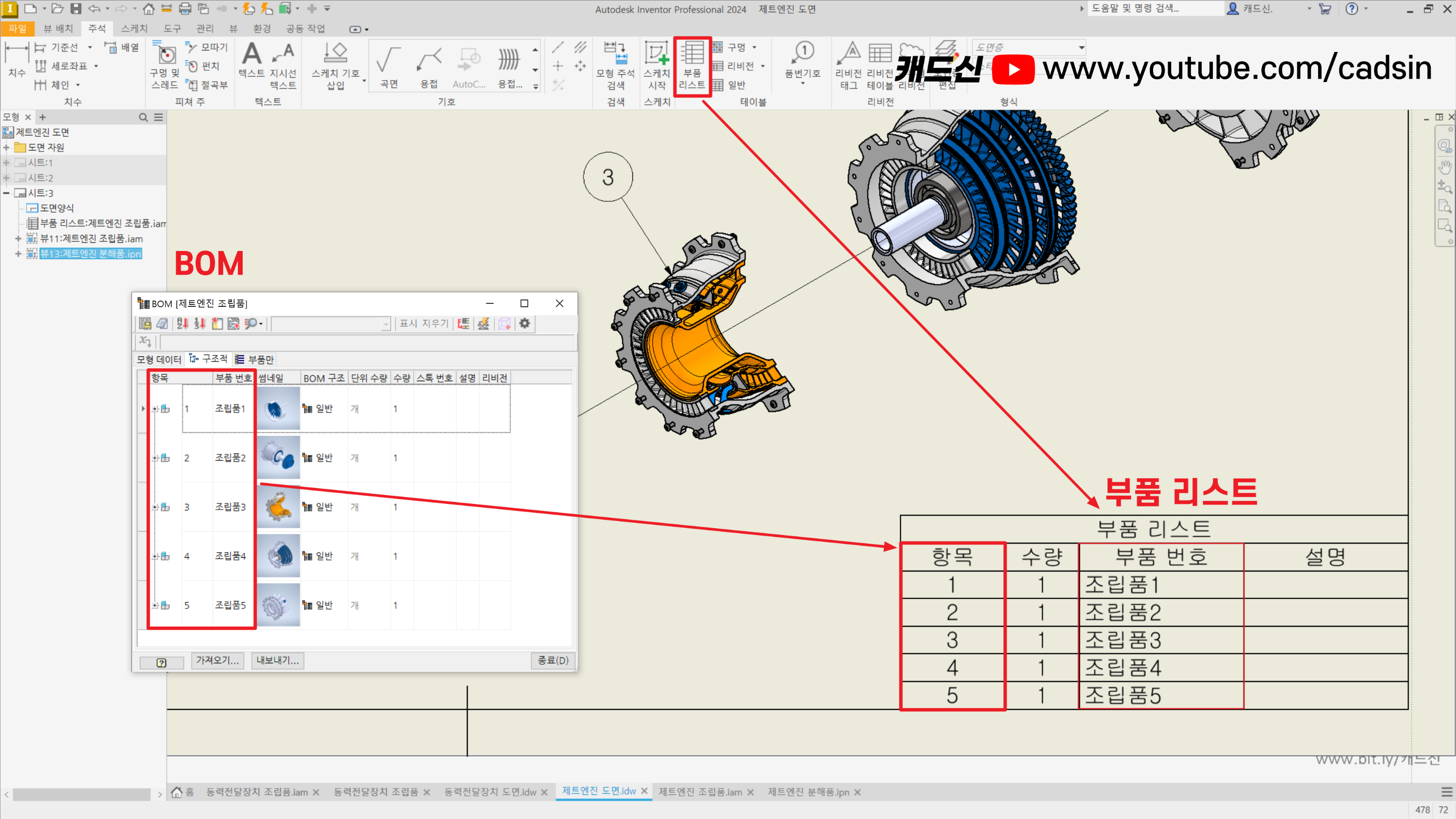 부품 리스트에 하위 부품ipt을 표시하는 방법은 매우 간단합니다.