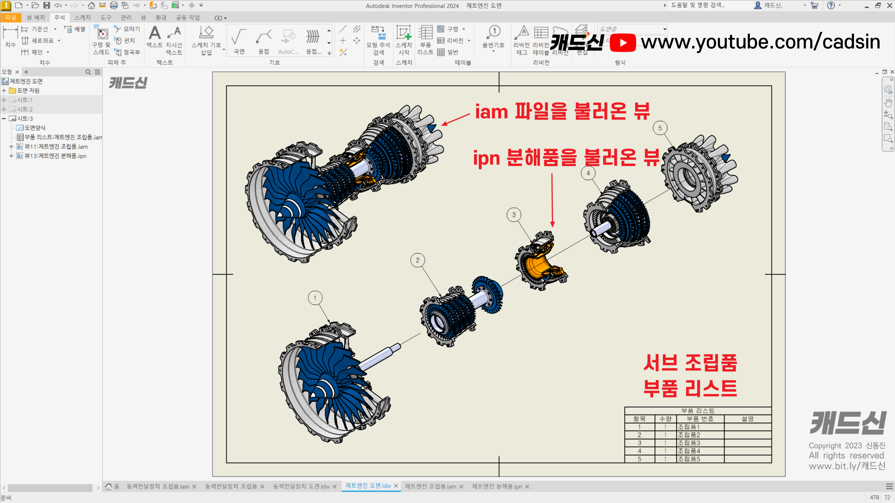 위의 조립품iam, 분해품ipn 파일을 사용하여