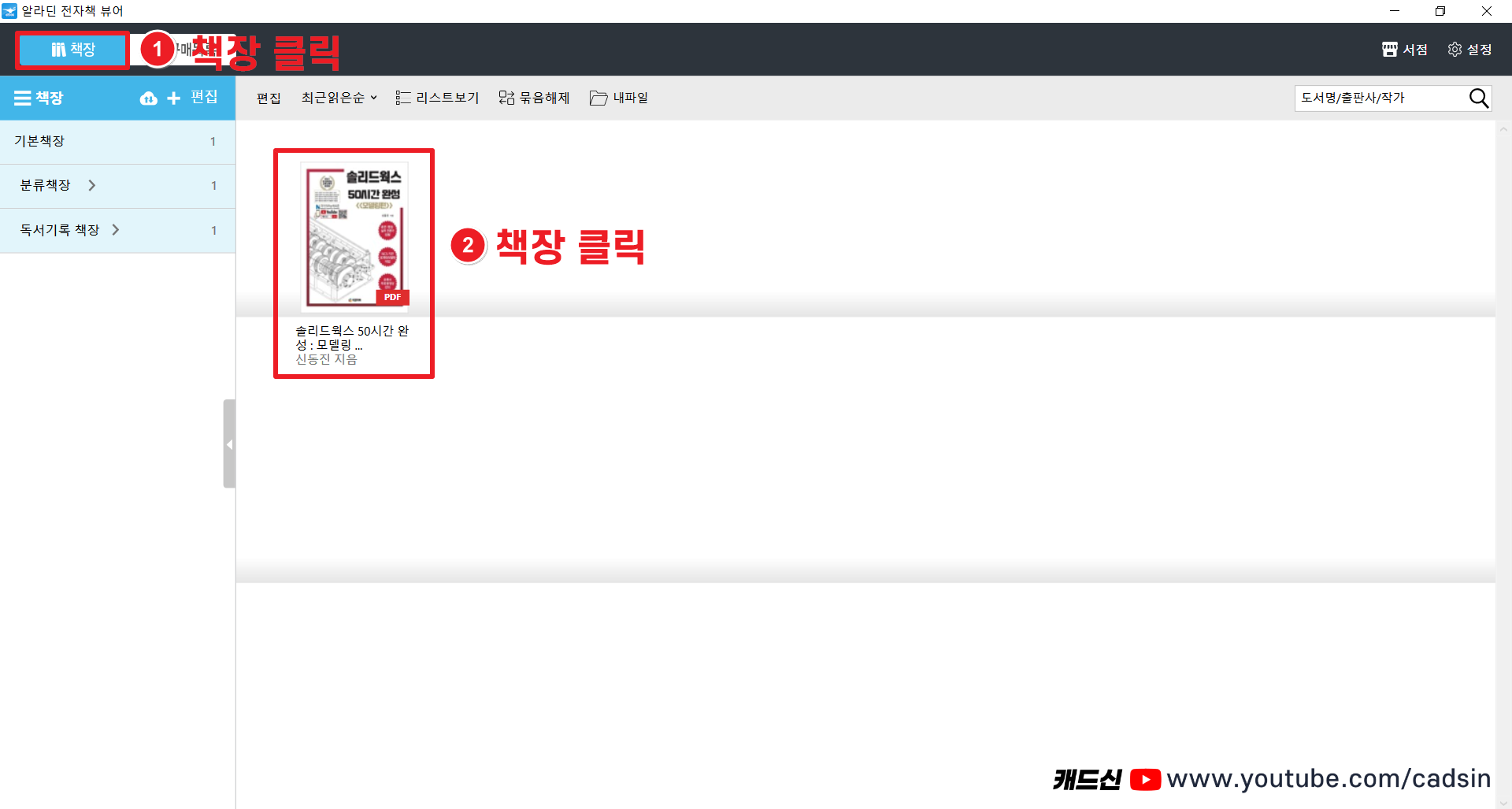 책장을 클릭하고 전자책을 더블클릭해서 실행합니다.