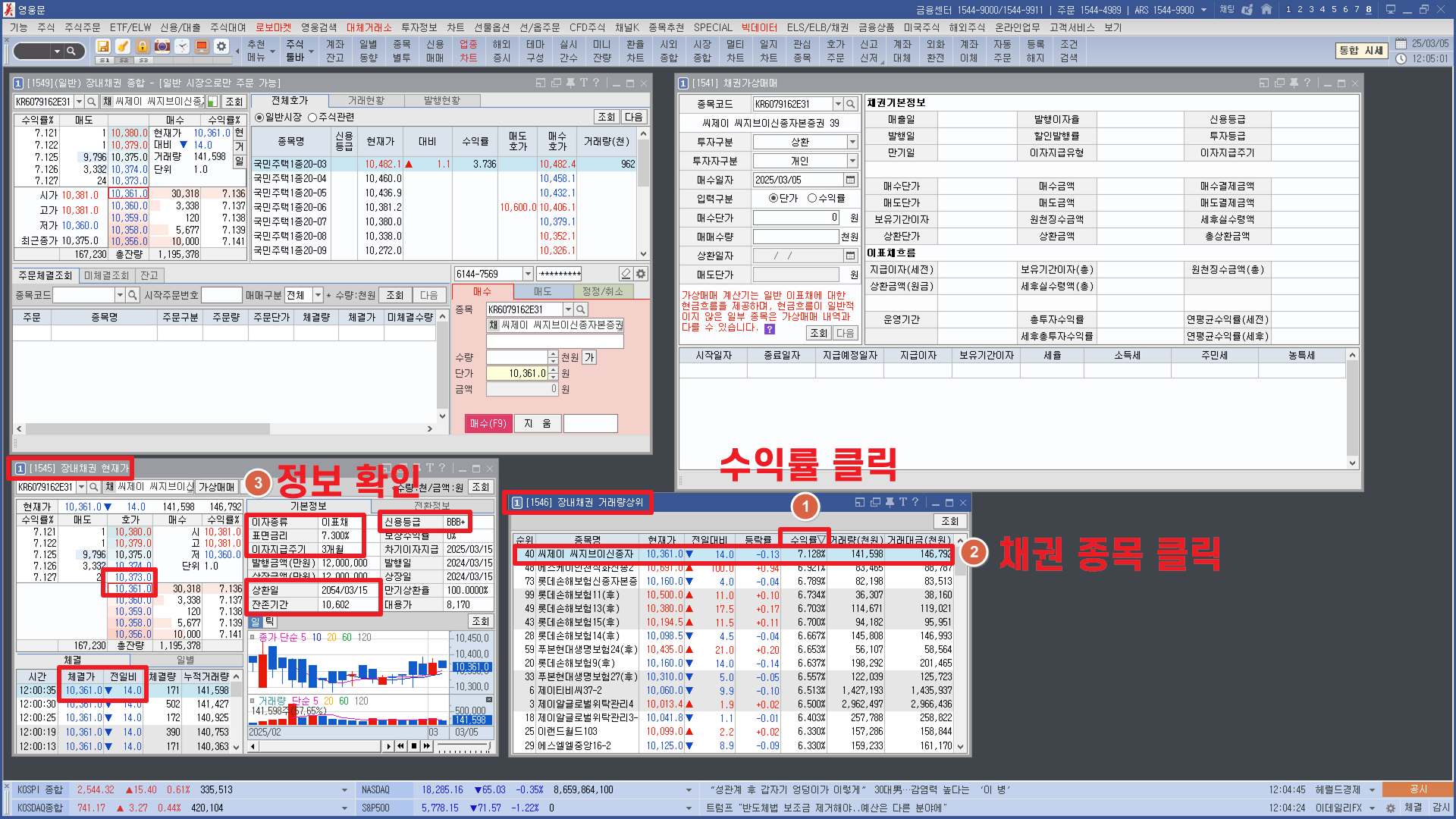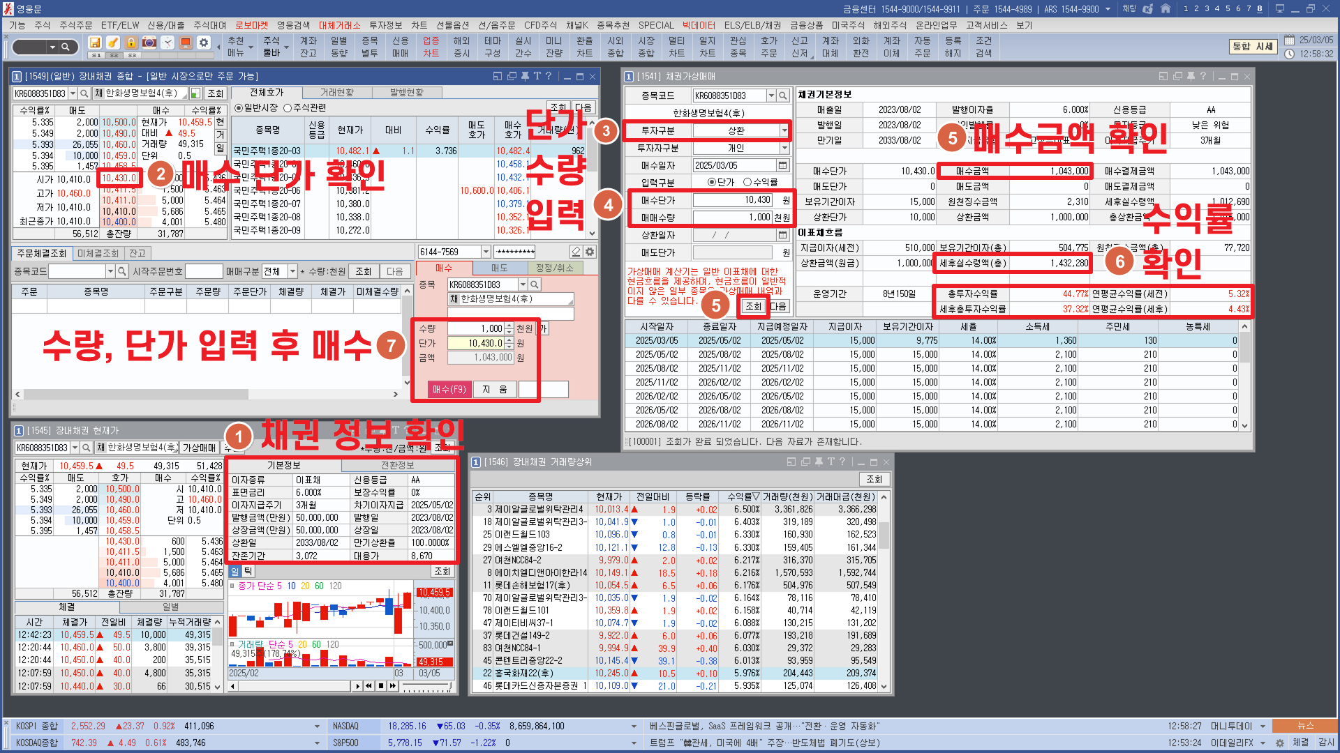 ② 거래되고 있는 채권의 매수, 매도 단가를 확인한다.