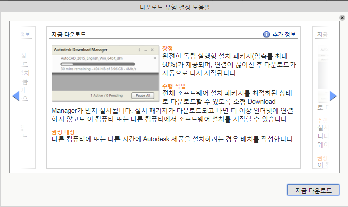 ② 지금 다운로드 : 2~3기가 정도의 전체설치파일 다운