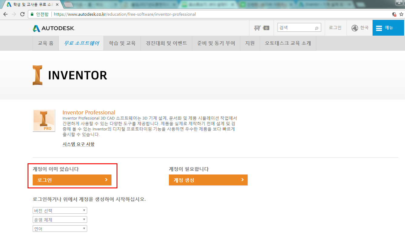 이제부터 인벤터(Inventor) 프로그램을 다운받아 설치하도록 하겠습니다.
