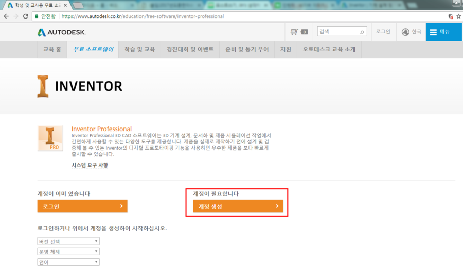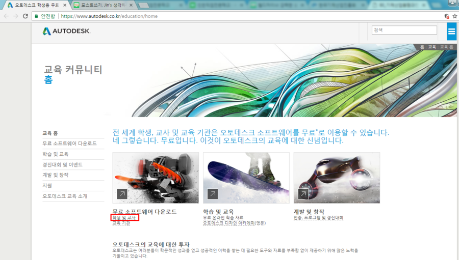http://www.autodesk.co.kr/education 접속 후